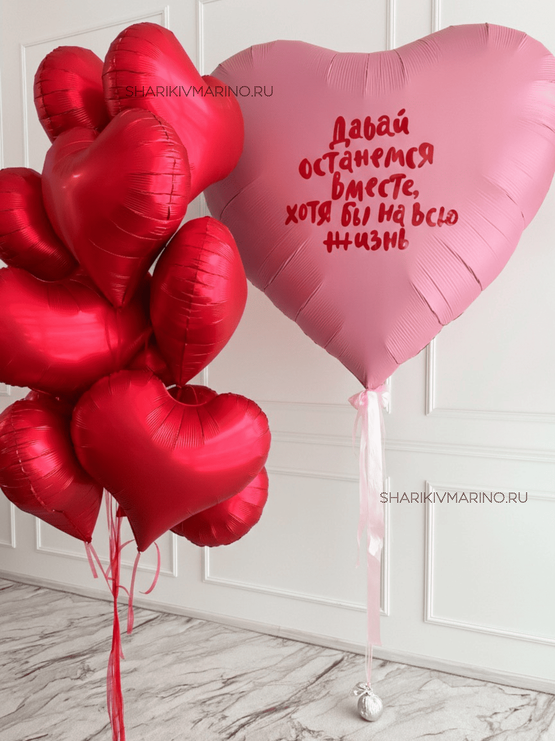 - Трогательная надпись: искреннее признание на большом шаре станет центральным элементом композиции и вызовет улыбку у получателя.