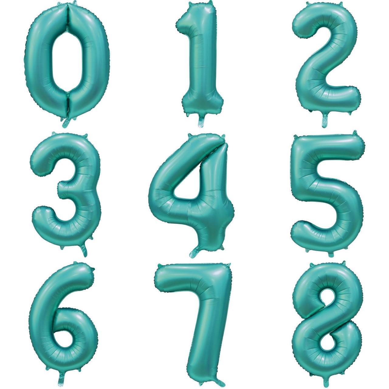 Фольгированные цифры 102 см с гелием (бирюзовый - сатин)