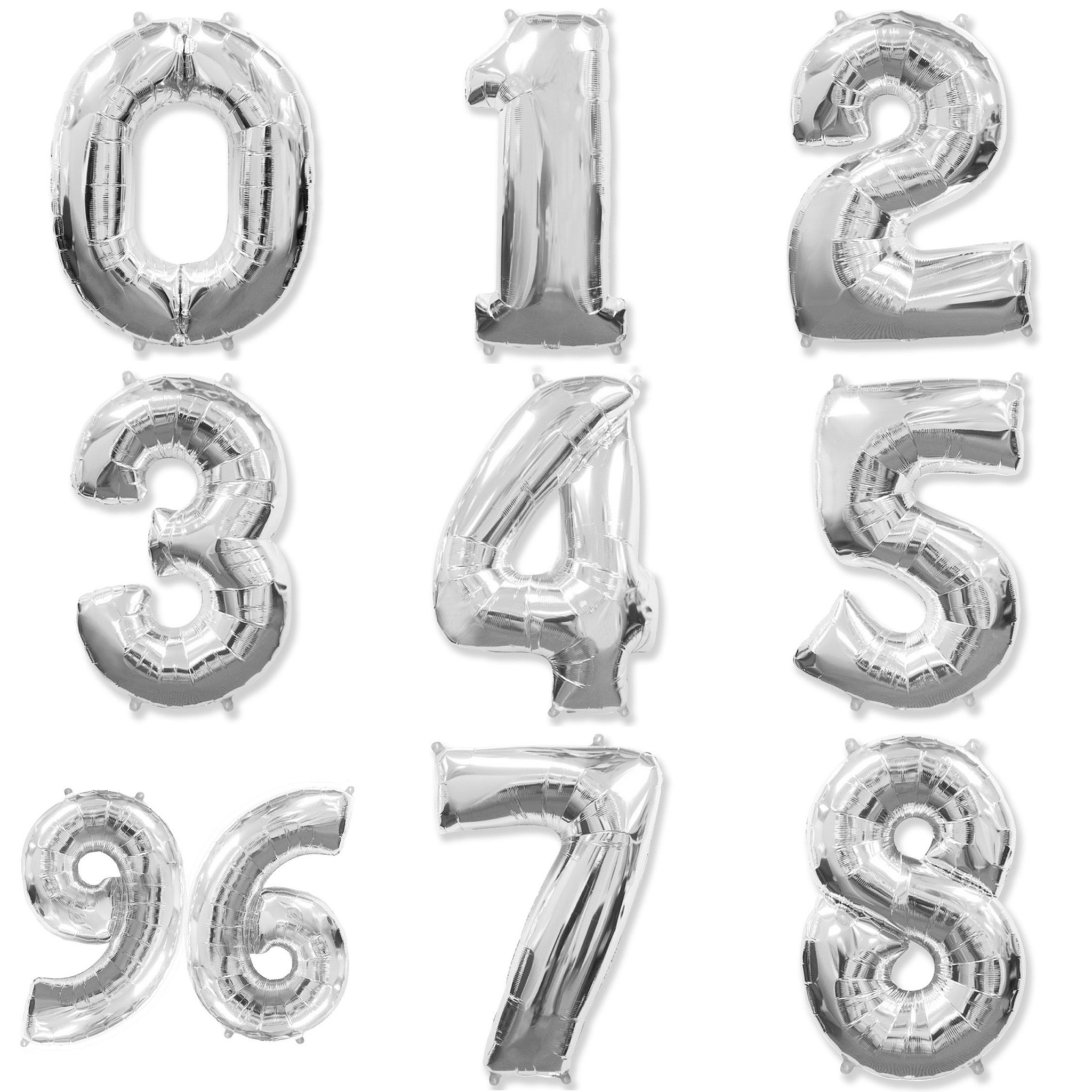 Фольгированные цифры 65 см с гелием (серебро - металлик)