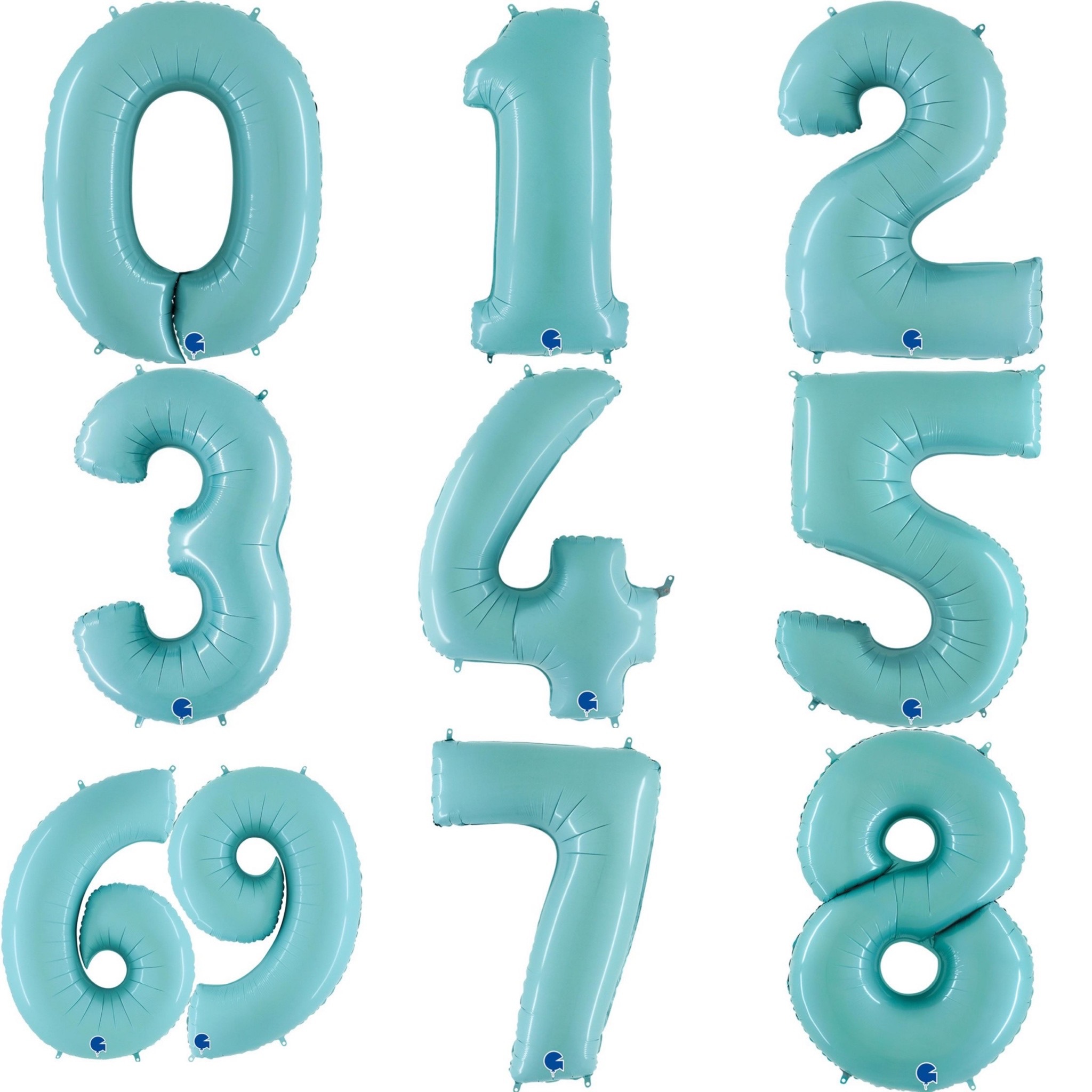 Фольгированные цифры 102 см с гелием (бирюзовый - сатин)