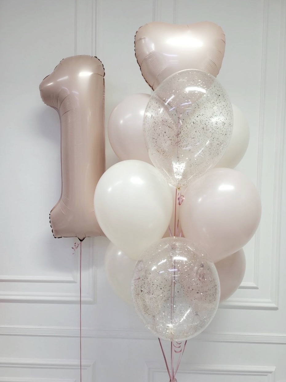 Фонтан из воздушных шариков на годик в розовых оттенках