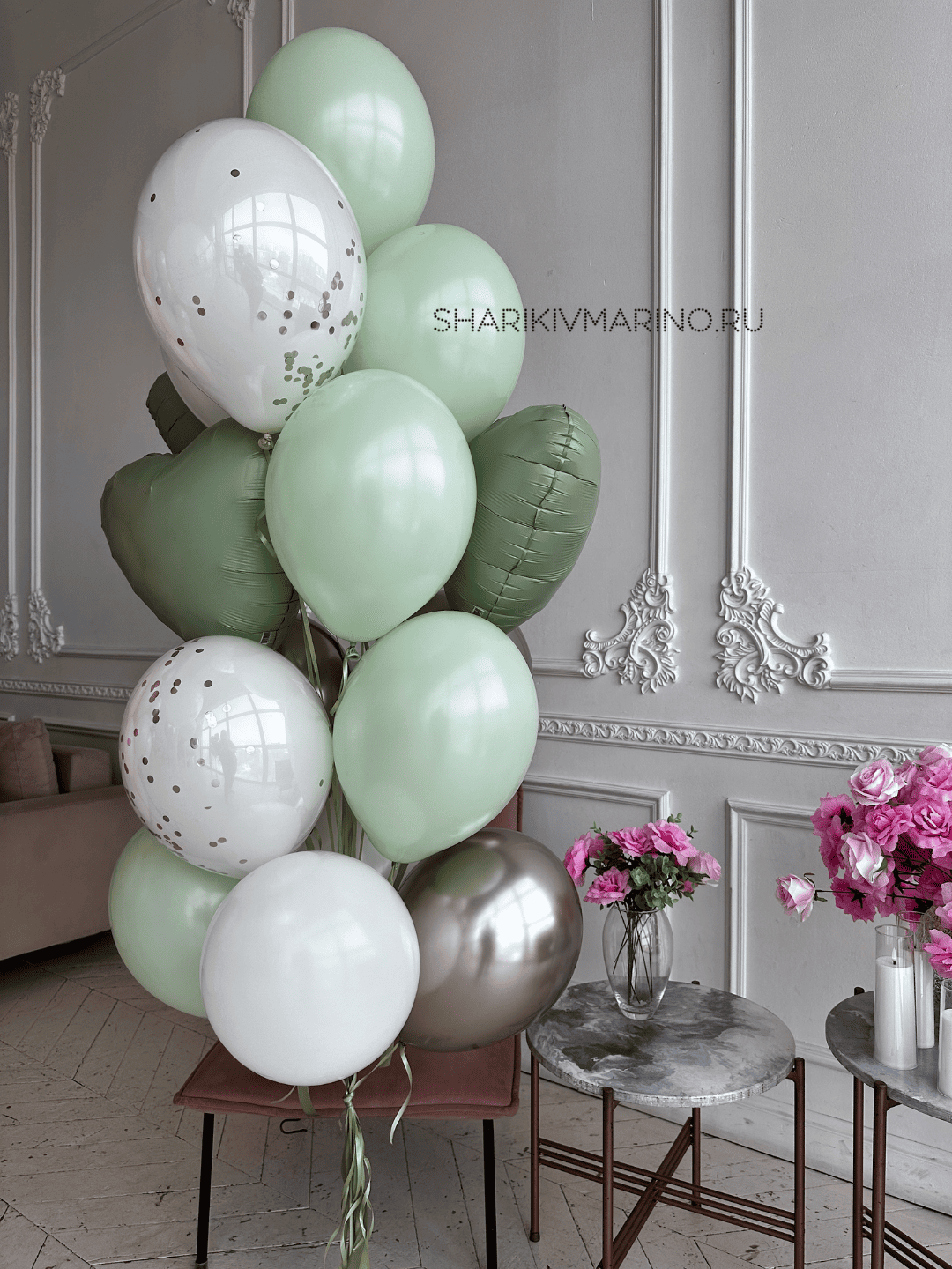 Элегантная композиция из шаров воплощает минимализм и стиль. В основе — изысканное сочетание трёх ключевых оттенков: