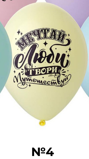 Латексные шары 14"/35 см с мотивирующими надписями. Все шары проходят обработку специальным безопасным средством Hi-Float для продления срока полёта.