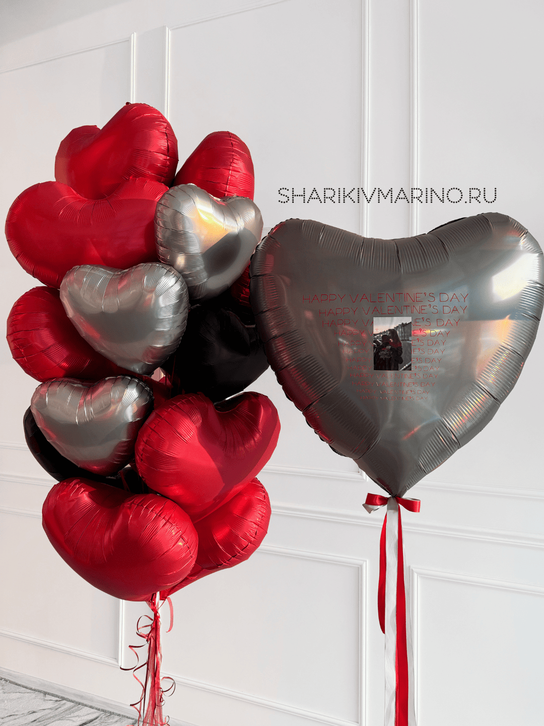 - Большой шар с надписью «Happy Valentine’s Day» и местом для фото — приятный штрих, который сделает подарок индивидуальным.
