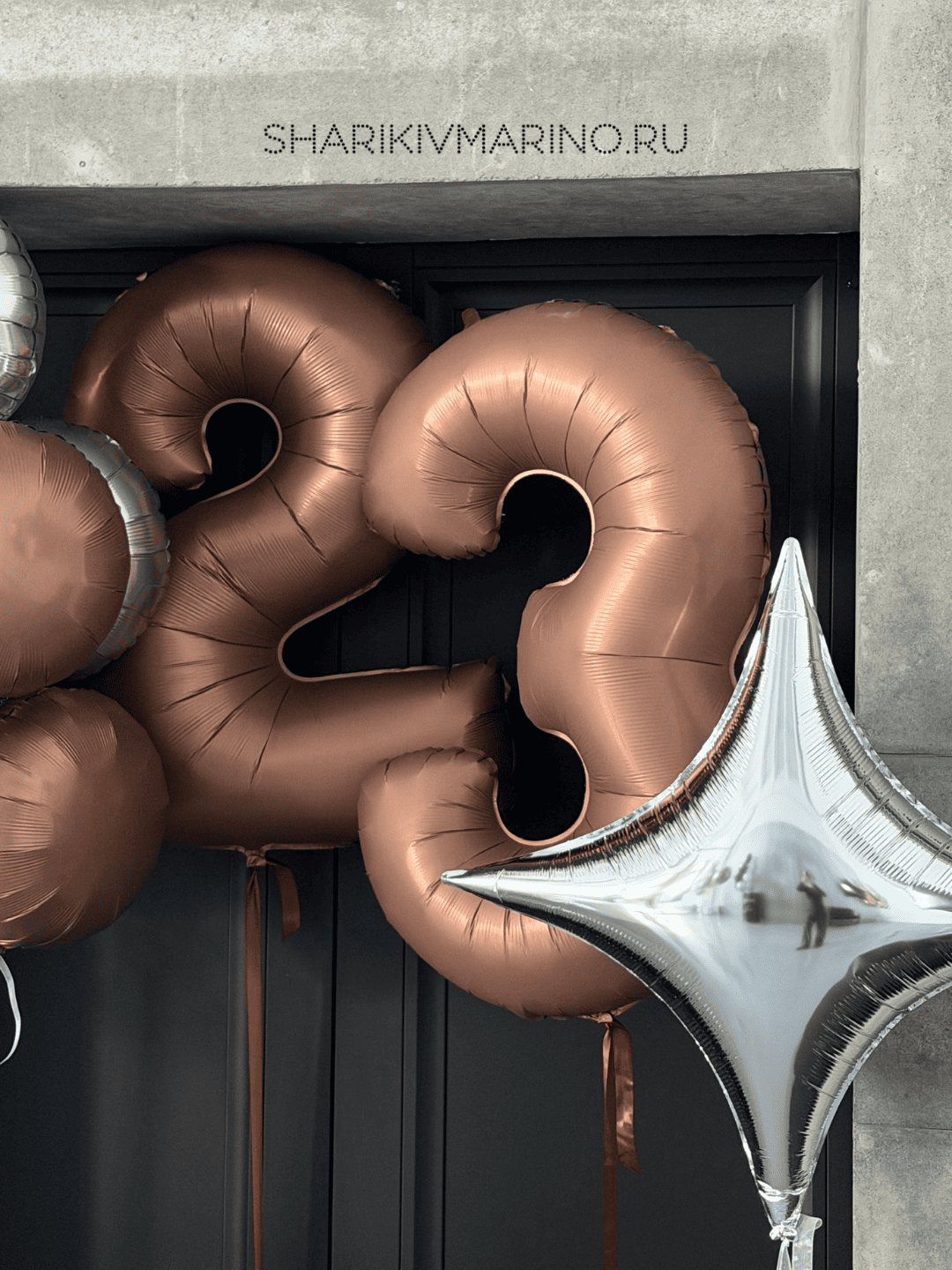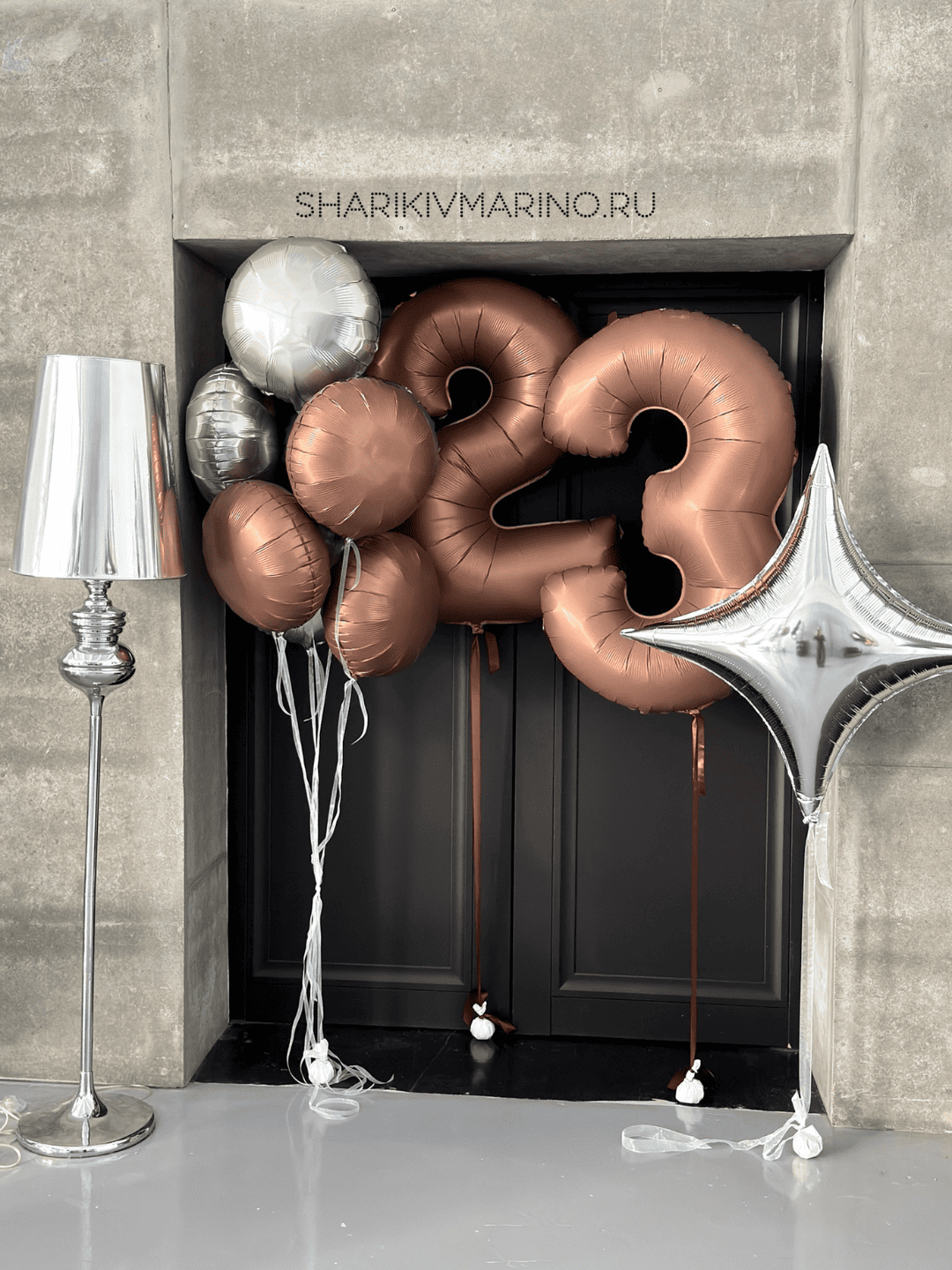 Шикарная композиция из фольгированных шаров в стильных шоколадно-серебряных тонах — идеальный подарок к 23 Февраля!