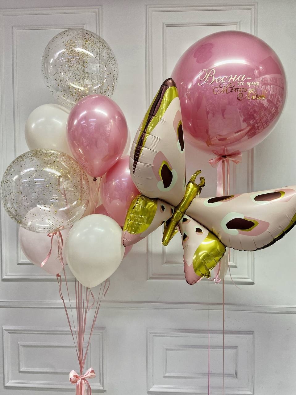 Композиция из воздушных шариков «Весна - это время мечтать и любить»