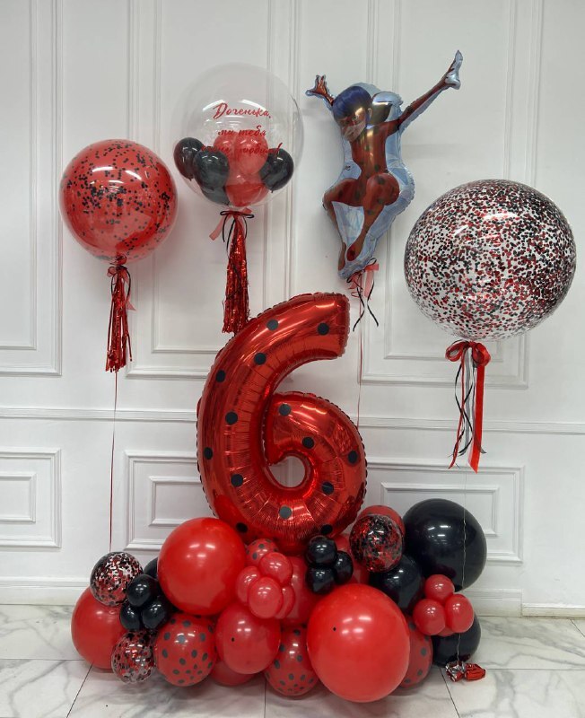 Праздничный набор шаров с цифрой 6 и персонажами Леди Баг