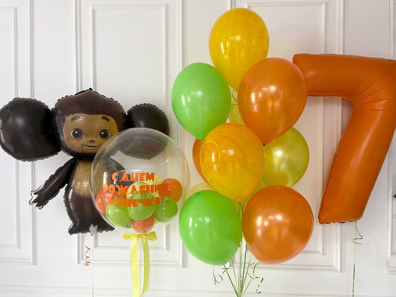 Радость с Чебурашкой: воздушные шары в ярких тонах