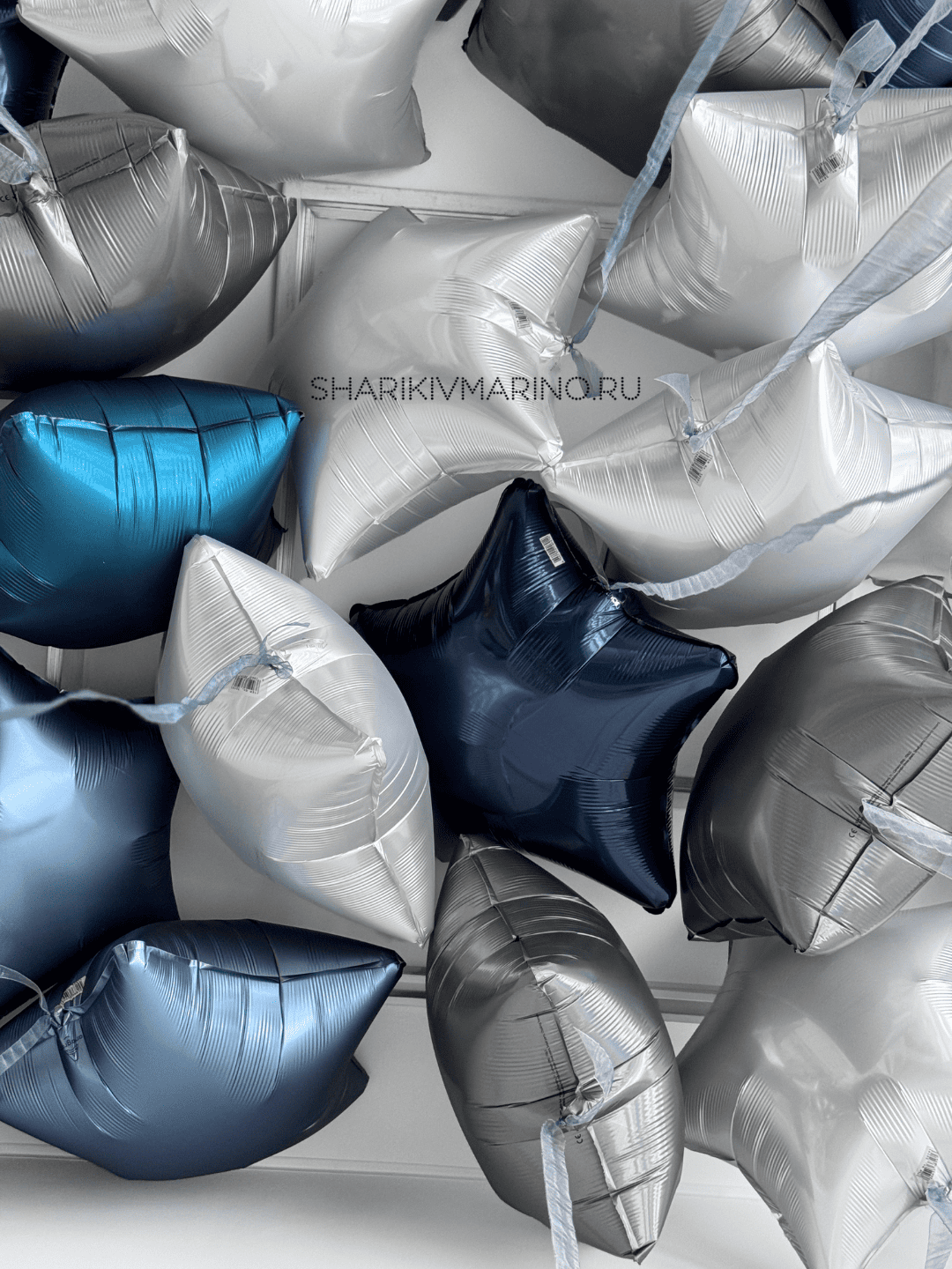 Превратите любой праздник в незабываемое событие с нашей изысканной композицией из фольгированных шаров в форме звёзд!
