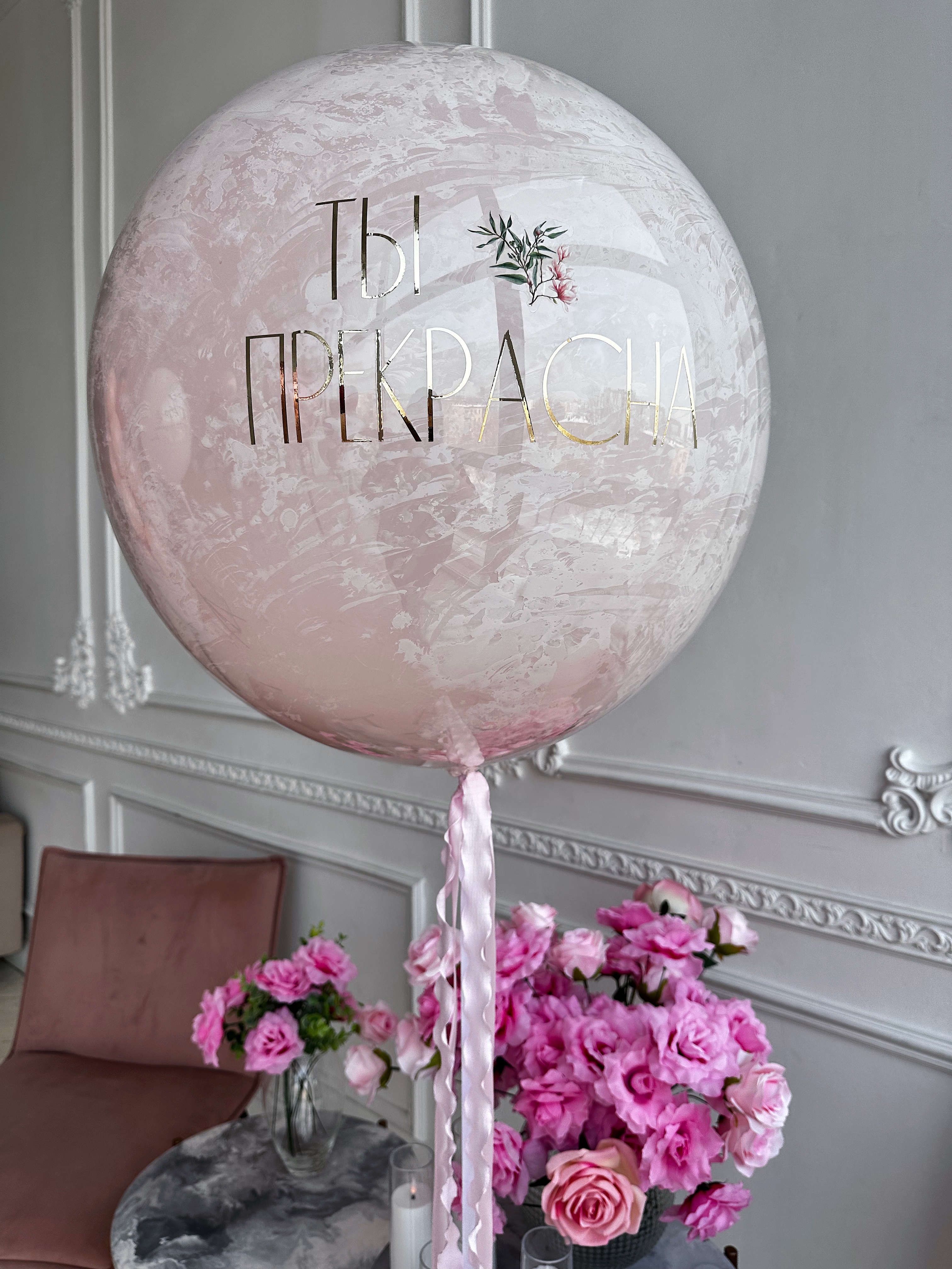 Стеклянный шар нежно-розового цвета «Ты прекрасна»