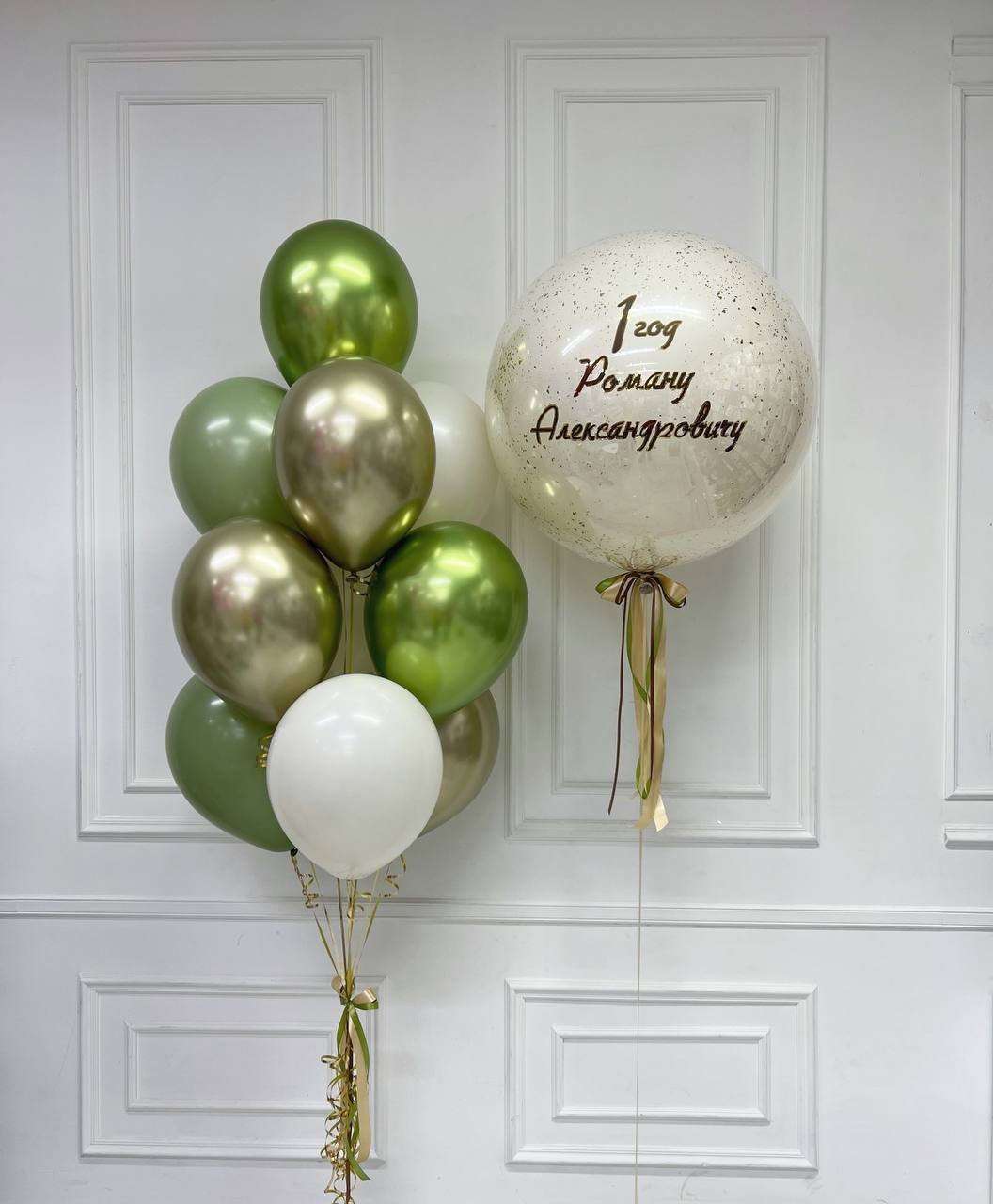Подарите вашему малышу незабываемый первый День Рождение с этой композицией из шаров! Стеклянный шар с конфетти и индивидуальной надписью и разноцветные шарики создадут атмосферу волшебства. Идеальная композиция для такого особенного праздника!