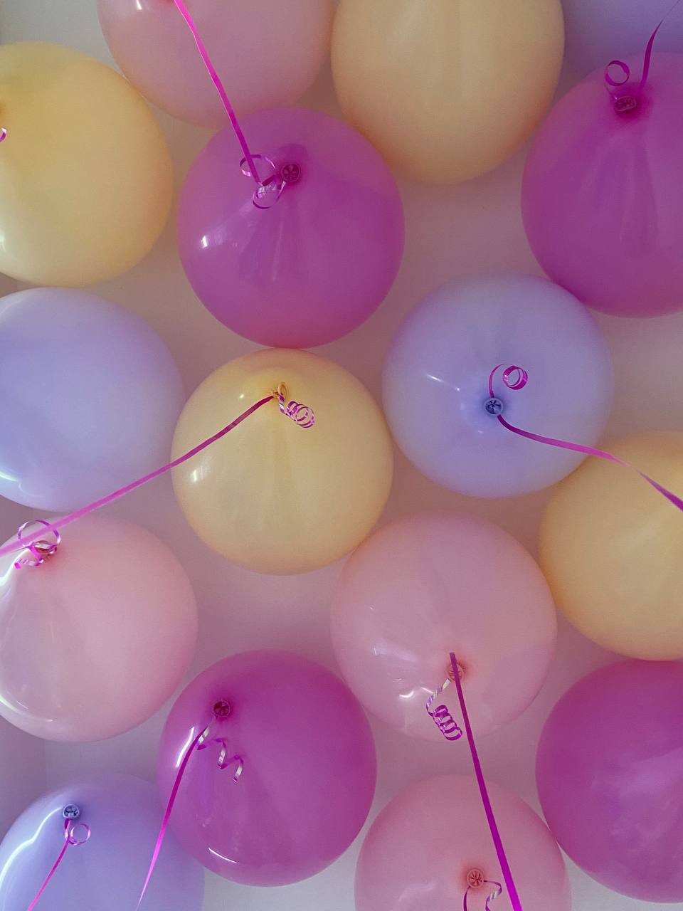 Розовые, фиолетовые и сиреневые шарики под потолок