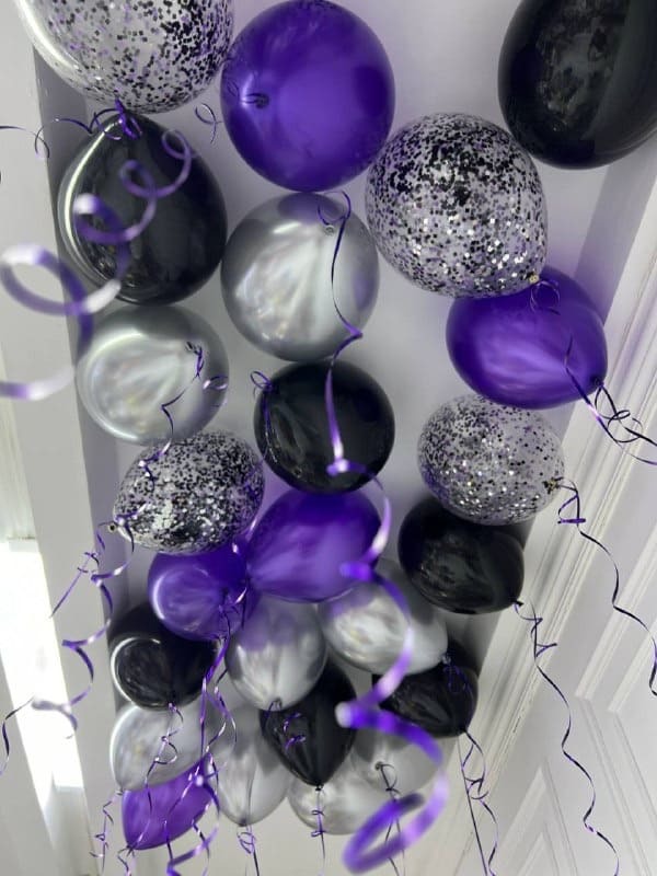 Воздушные шарики фиолетовые с серебром и чёрным