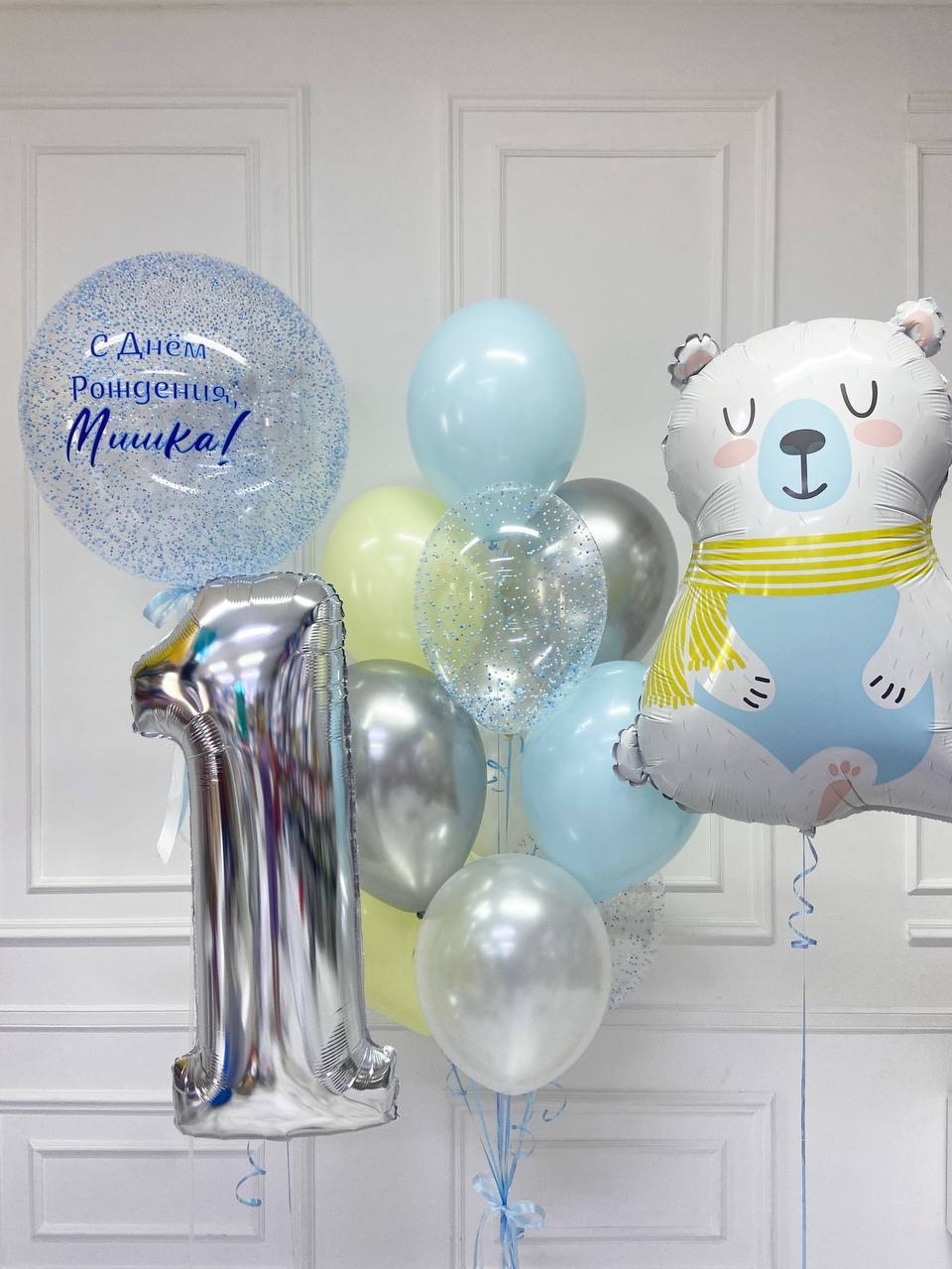 Воздушные шарики на 1 год мальчику с мишкой