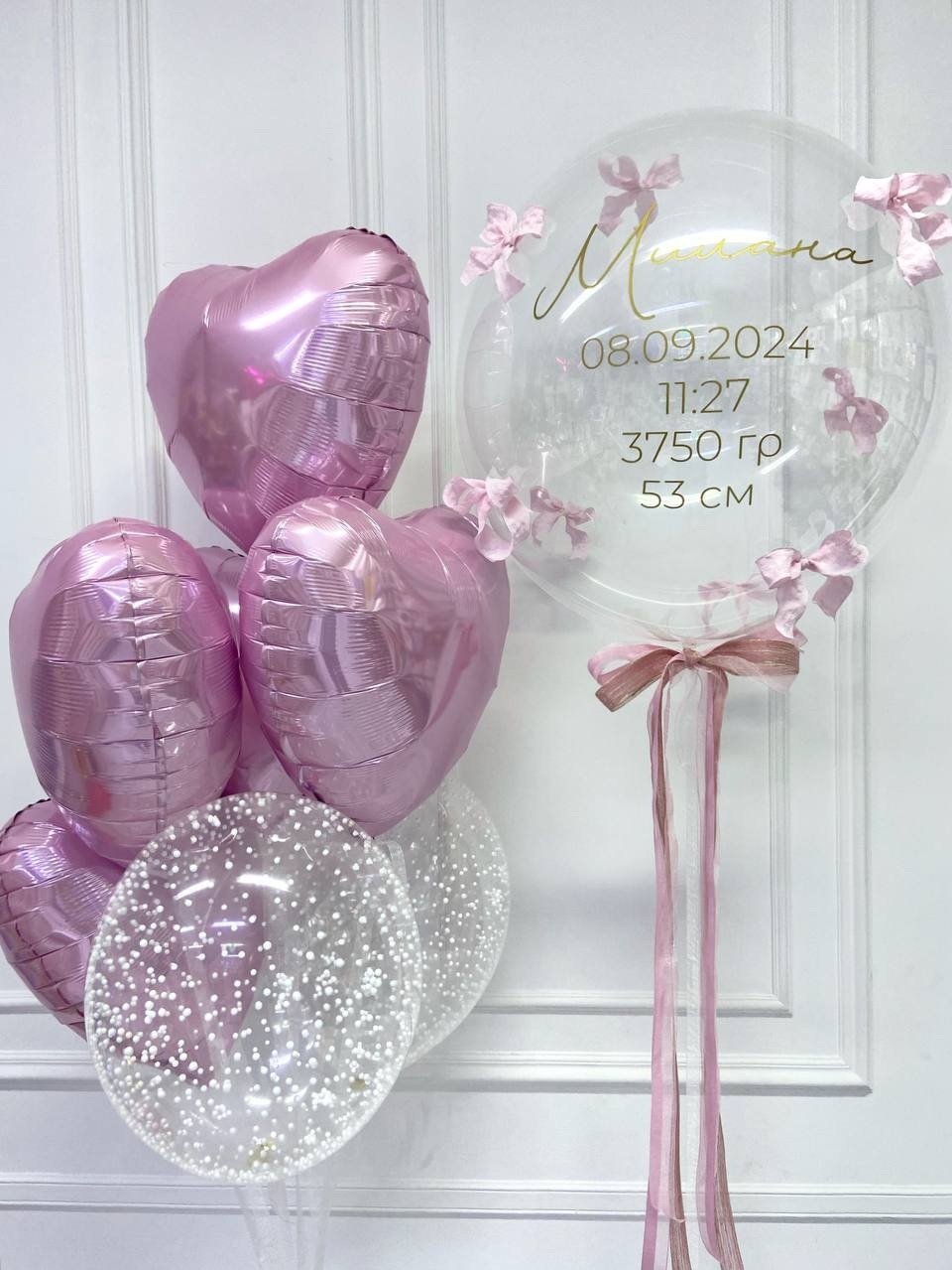 Воздушные шары на выписку из роддома для девочки с бантиками