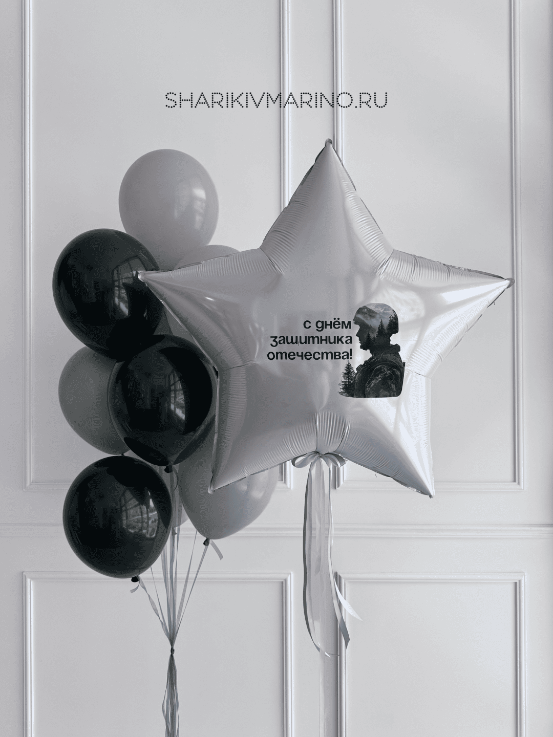 Представьте изысканную композицию из воздушных шаров, которая станет настоящим украшением праздника в честь Дня защитника Отечества.